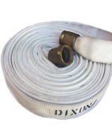 Manguera contra incedios 1-1/2″ x 50′, Ext.: funda sencilla poliester, Int.: forro hule EPDM, Presión prueba: 300 PSI, Presión ensayo: 150 PSI, Presión trabajo: 135 PSI, estandar UL, NFPA 1962, c/ acoples bronce rosca NST(NH) H x M, DIXON – USA