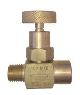 Valvula aguja, cuerpo de Bronce y vastago de acero inoxidable 316, , asiento suave de Delrin, orings de viton, empaques de teflon, presion de servicio 6000 PSI